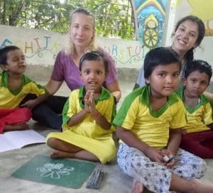 Yo hice un voluntariado en Calcuta de dos meses en la Ong Smile ngo, concretamente en Madhyamgram, una población a unos 20 km del centro de la ciudad. Se trata de una escuela no formal, en la que los niños de la zona acuden por las tardes como refuerzo escolar. Principalmente se les enseña inglés ya que el nivel que tienen en la escuela es bastante pobre y, como seguramente sabes, el inglés en India es bastante importante al ser lengua oficial. Durante mi voluntariado además de inglés, también cantamos, dibujamos, plantamos en el huerto, y algo muy importante: el yoga! Después de cada clase lo practicamos así como meditación. El yoga es una asignatura más en las escuelas de India y para ellos es indispensable realizarlo cada día!